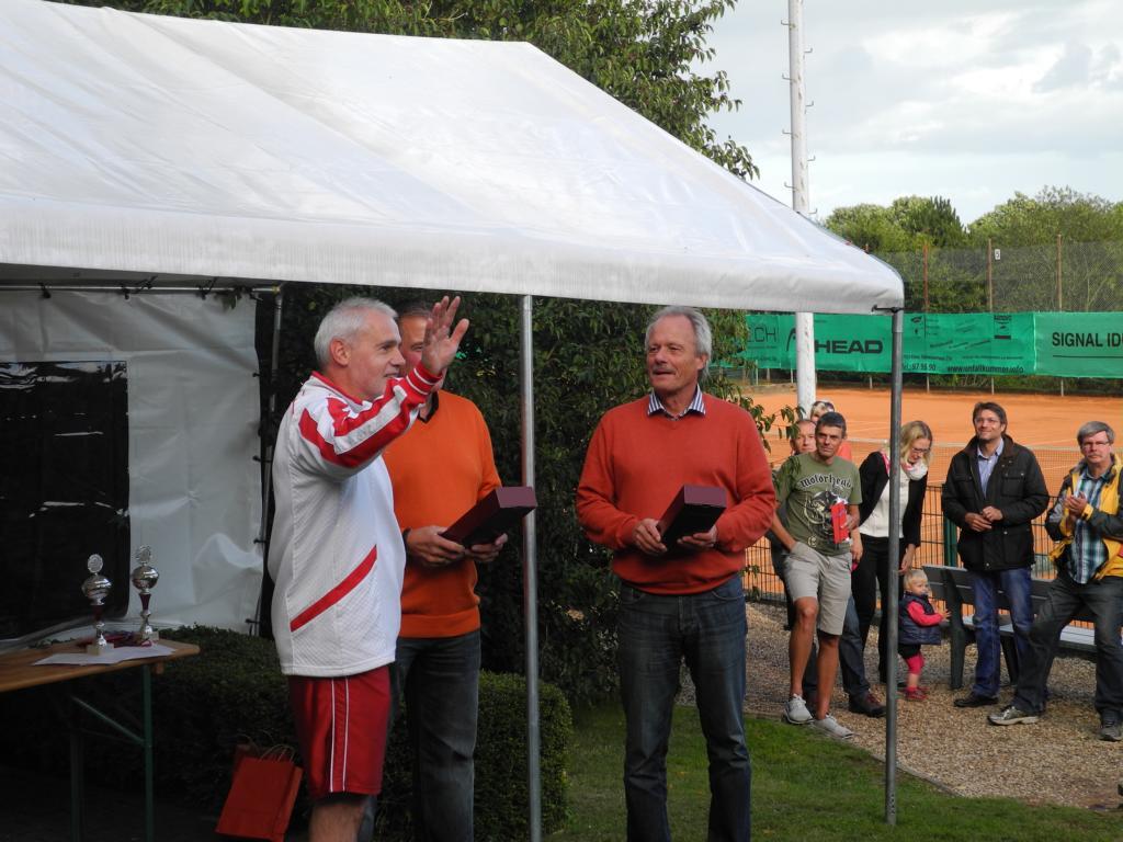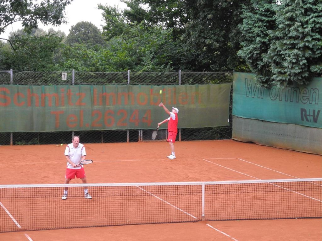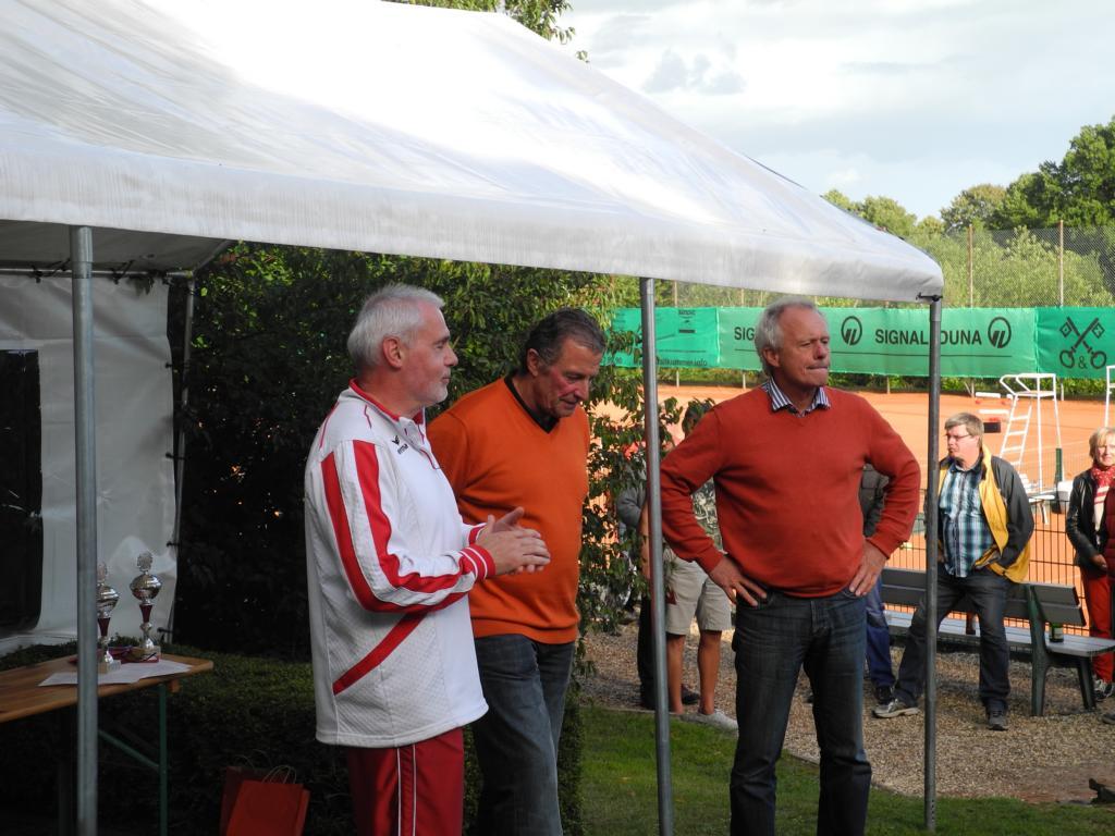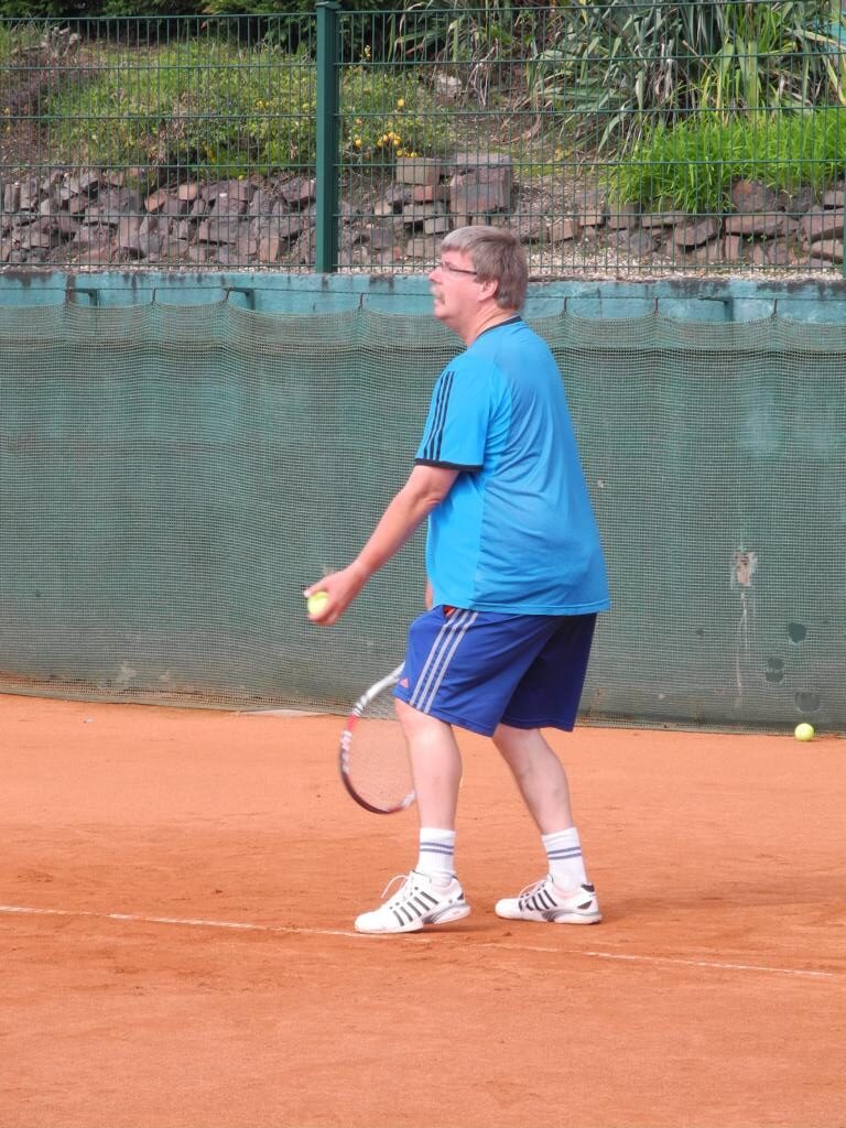 Ein Feld von 86 Teilnehmern, wer hätte das gedacht! Eine Woche lang war richtig was los auf der Anlage. Vergleiche mit früheren Zeiten wurden bemüht. Der Spielbetrieb, der sich meist auf 6 Plätzen abspielte, stand natürlich im Mittelpunkt. Aber auch der gesellige Teil kam mächtig auf seine Kosten. Genuss pur, so hörten wir mehrfach. Die Organisation funktionierte hervorragend und ließ sich auch von den regelmäßigen Regenschauern nicht beeindrucken. Pünktlich zu Beginn des Turniers am Montag, den 11.08. um 17.00 Uhr öffneten sich die Himmelsschleusen und ein mehrminütiger Starkregen setzte die 7 Tennisplätze mal eben unter Wasser.