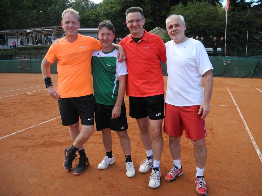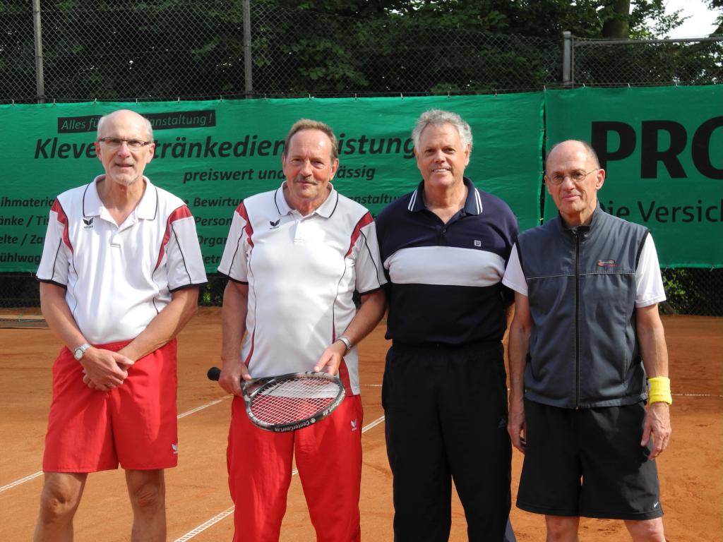 Mächtig ins Zeug hat sich in dieser Medensaison das Team um Mannschaftsführer Frank Wütscher gelegt. An den Aufstieg mag zu Beginn kaum jemand gedacht haben. Jedenfalls gab es hierzu höchstens verhaltene Äußerungen. Nachdem auf halber Strecke BW Veert in fulminanter Manier niedergerungen wurde, war der Kurs klar auf Aufstieg programmiert. BW Veert, sah sich selbst als ‚designierten‘ Aufstiegskandidat, verzweifelte nicht nur an Kleves Neuzugang Davide Mazza, der an Position 2 einmal mehr seinen Gegner regelrecht vom Platz schoss. Mit den Worten „Jungs, ich bin stolz auf Euch“ kehrte Frank nach dem letzten Spiel in Walbeck seine emotionalste Seite nach außen, phänomenal! Auf die Bezirksklasse freuen sich Wolfgang Bong, Davide Mazza, Manfred Starlinger, Roger Weingarten, Jochen Rübo, Frank Wütscher, Michael Zoller, Peter Smeets, Frank Kühne und Wilhelm (Plim ten Eikelder). Phänomenal ist aber nicht nur das Ergebnis. Das gilt auch für den Zusammenhalt der Mannschaft! Eine tolle Mannschaftsleistung.
